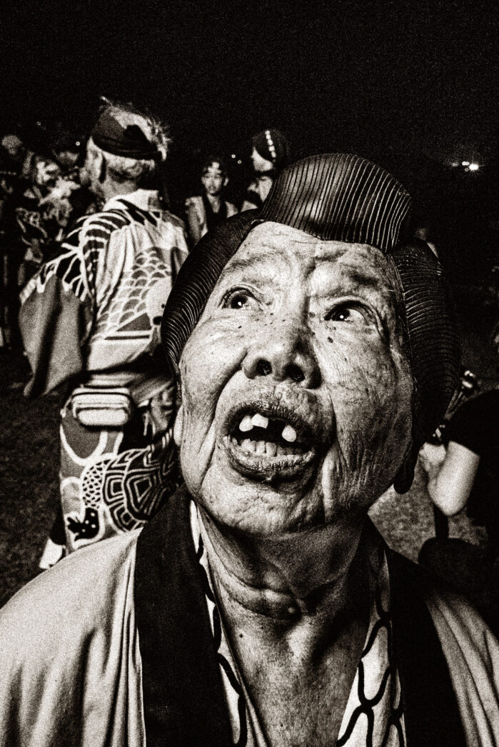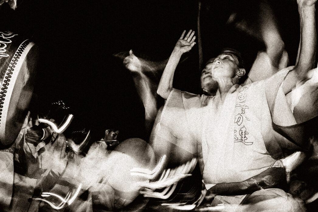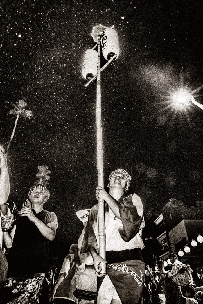 葬儀で盛大に踊りながら故人を送り出す様子を見て、自然と涙が込み上げてきた。寺の中に響く鳴り物の音、連員の「やっとさー」という掛け声が、亡き連長に優しく語りかけているようで、阿波踊りが血縁関係を超えて人々に深い絆を生み出しているように感じた。この日を境に私は阿波踊りを作品として撮影しようと決意した。そして同年8月、徳島、高円寺の阿波踊りを訪れた。