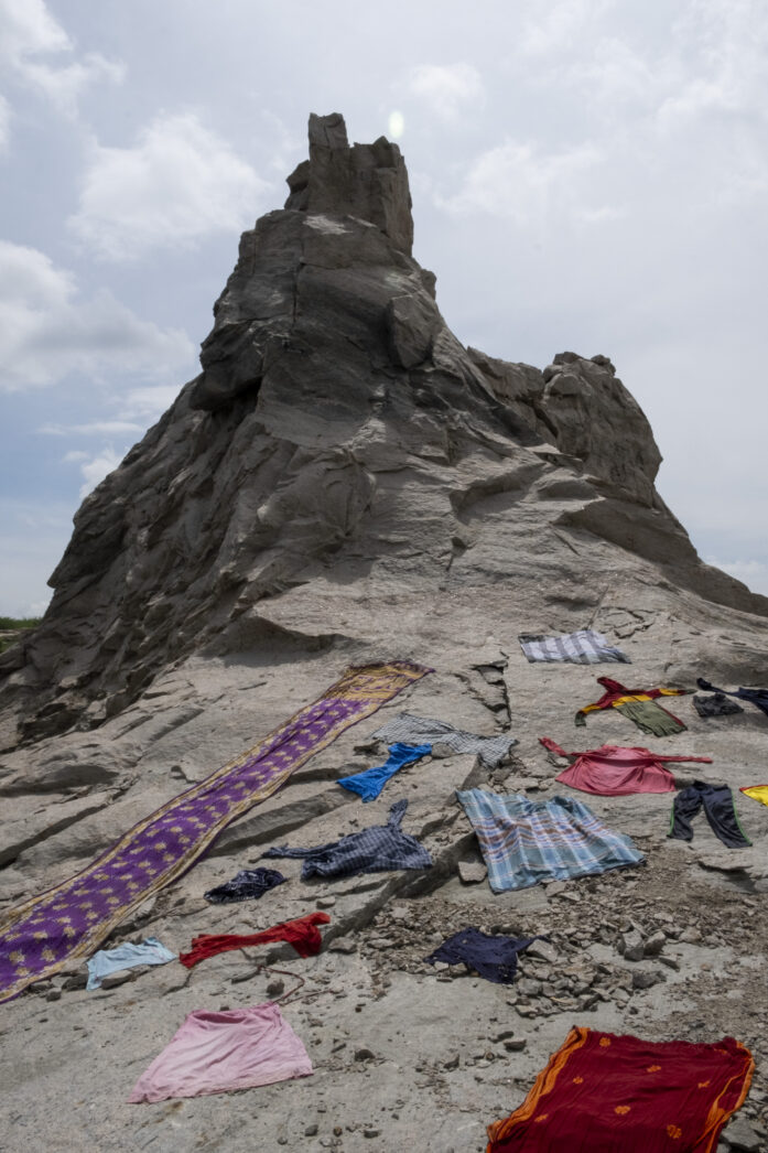 長期間にわたって本能的に撮影されたこれらの作品は、日常の周縁にある瞬間を記録する空間を生み出す。湿った衣服を山の前で乾かす農家の家族、採石により割れ侵食された山、儀礼用の道具と絡み合うトゥダ族の女性の髪、電球の内部に巣を作るミツバチ──これらの作品は、緊張としなやかさ、変容に彩られた多層的で矛盾に満ちたインドの風景を証言する。